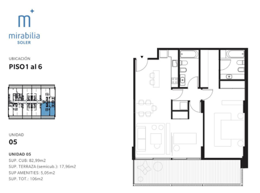 Exclusive launch 10-story New Development in the heart of Palermo Hollywood, a neighborhood where tranquility and beauty coexist with trendy bars and restaurants, as well as major film and television production companies. Functional, understated, one and 2 bedroom apartments ranging from 43 m2 to 83 m2. Amenities include Outdoor Pool, Grill, Solarium, and lounge, with the quality you expect in a MIRABILIA Building Garage with parking spots available for purchase. Estimated delivery date March 2025